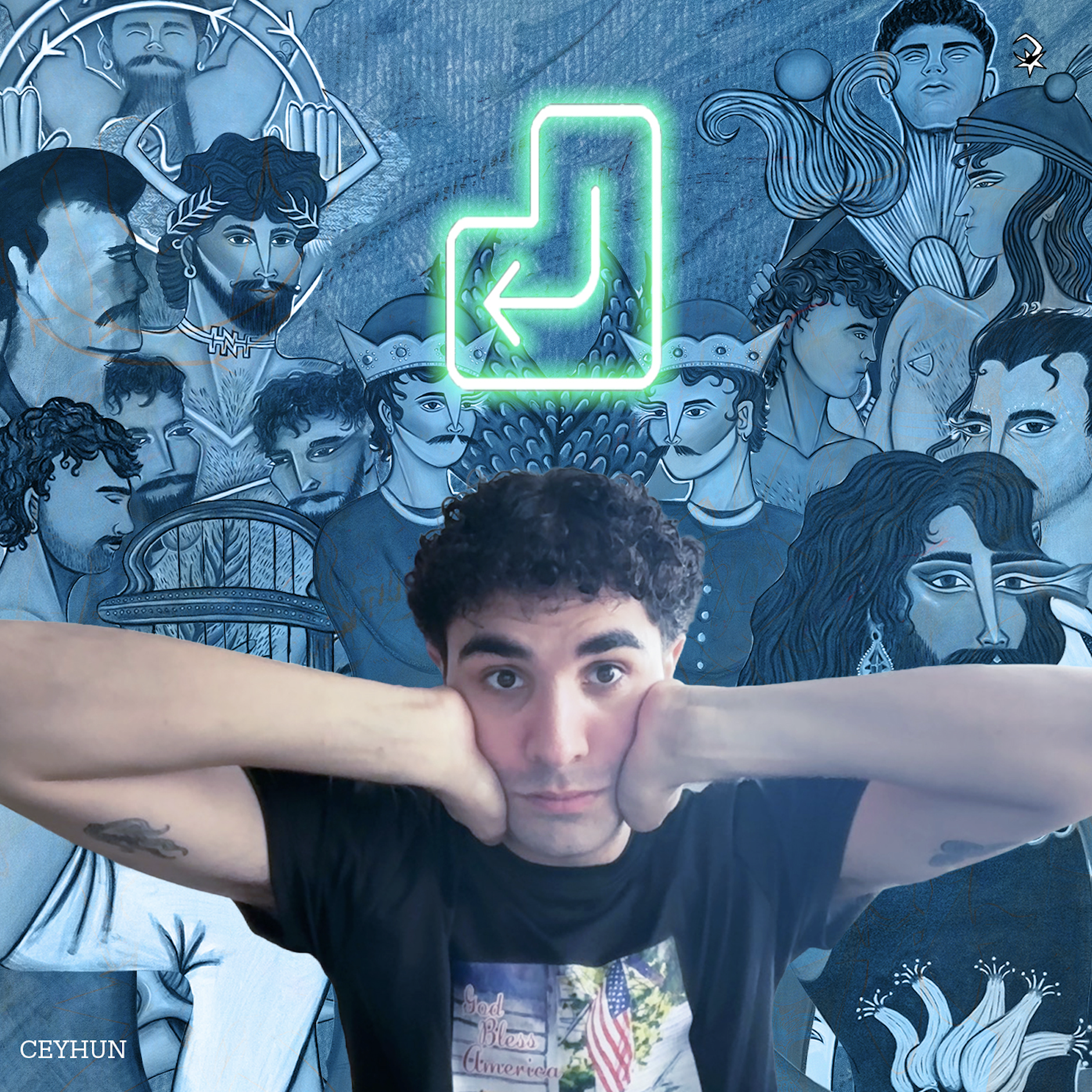 Enter consists of ten figurative paintings and ten corresponding songs that each depict a different side of the same person and hints at a narrative that goes beyond the surface of the canvas. The project is influenced by often contradictory or seemingly non-negotiable cultural contexts and histories. It is an explicit attempt at playing with selfhood.